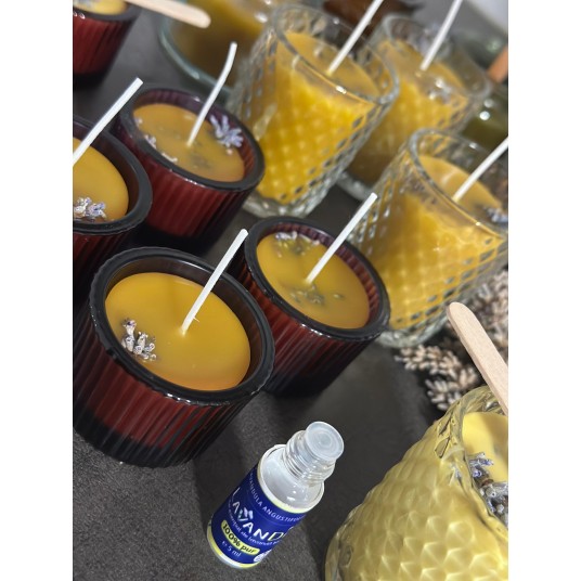 • Lumânare cu ceară de albine și ulei esențial de lavandă - recipient din sticlă, ceară 100% naturală, fără parafină